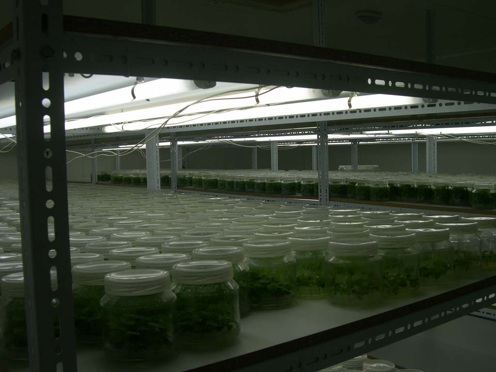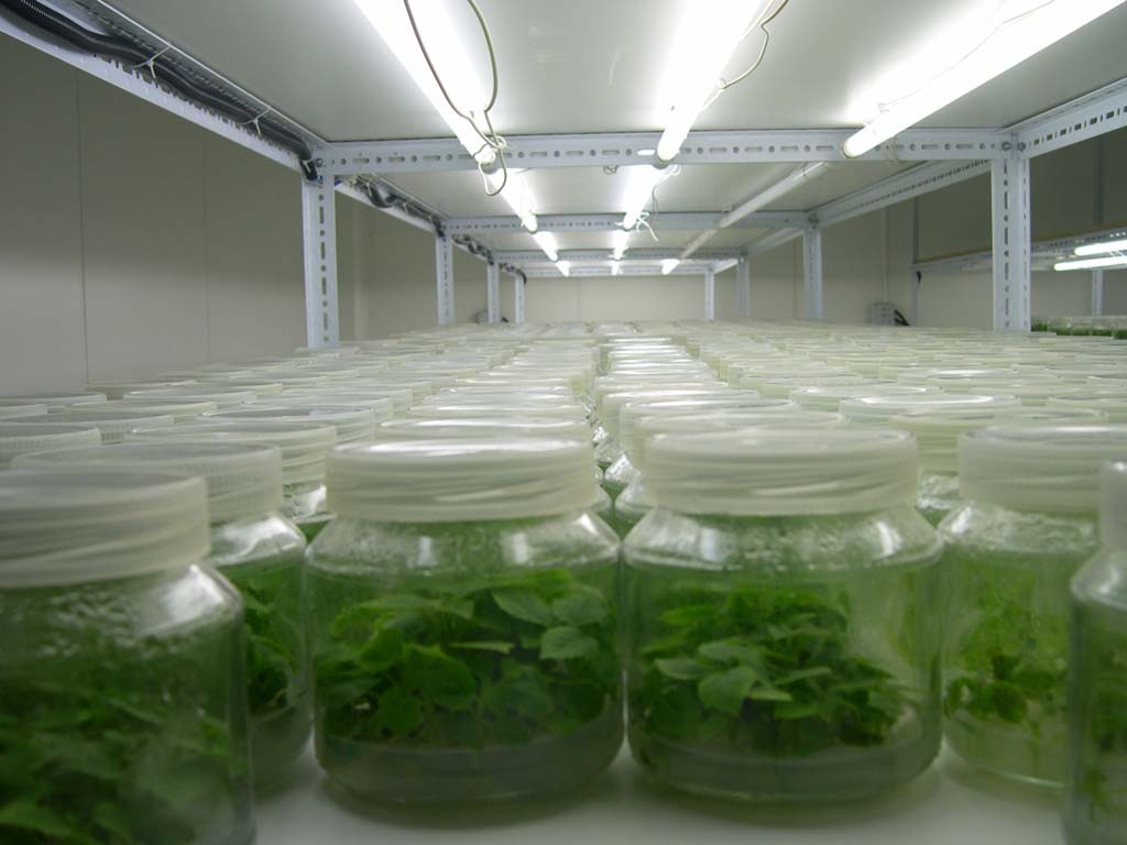 La micropropagación es una técnica delicada que se lleva a cabo en las condiciones controladas de un laboratorio muy aséptico. Consiste en reproducir micro esquejes tomados de ciertas partes de las plantas de origen. Muy frecuentemente, las yemas apicales. En ellas se encuentra el meristemo, un grupo de células indiferenciadas o células madre que se están reproduciendo continuamente y especializándose a continuación en el órgano correspondiente: hojas, tallo, flores o lo que corresponda. Y si lo que corresponde son raíces, pues raíces. Los meristemos son más efectivos que el cambium, esa capa que encontramos adherida a la madera cuando pelamos un trozo de corteza de una rama o tronco, que se oscurece al poco tiempo en contacto con el aire igual que una manzana cortada. El cambium también está compuesto de células madre y genera indistintamente capas de madera hacia el interior, de corteza al exterior, yemas cuando corresponde, sobre todo después de una poda y también raíces cuando se trata de un esqueje tradicional o un acodo. Sin embargo, carece de la ventaja que tienen los meristemos de las yemas de ser lo más nuevo en la planta, materia virgen que no ha tenido tiempo de entrar en contacto con ningún patógeno (no está vascularizado y crece más deprisa que la propagación de los virus), por lo que la división de meristemos dará cepas estériles, libres de toda plaga.